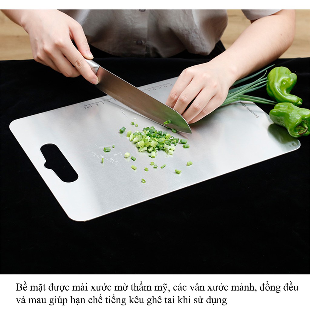 Thớt Inox 304 cao cấp AnShin size lớn 25x36cm - CHUẨN INOX 304 NAM CHÂM KHÔNG HÚT DÍNH- Thớt Inox 304 AnShin kháng khuẩn, không gỉ sét, an toàn với thực phẩm