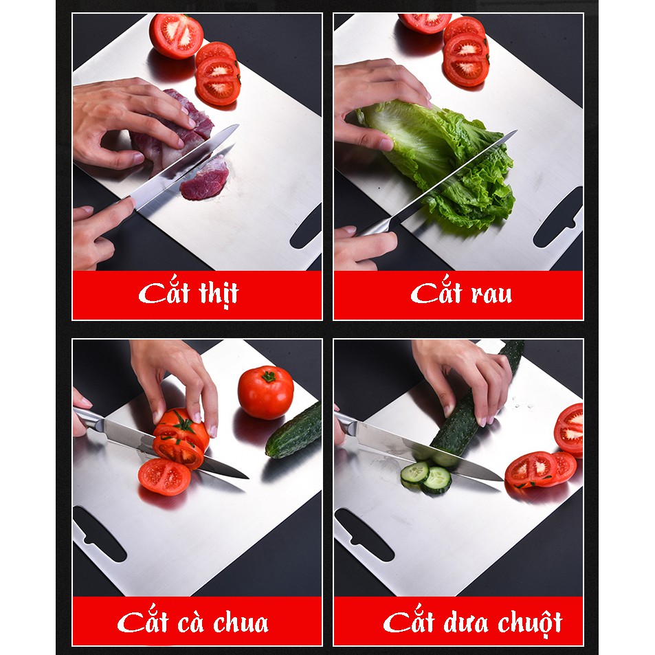 Giới thiệu Thớt Inox 304 Cao Cấp Dày 3mm Kháng Khuẩn, Chống Mốc, Chống Mùn, Chống Mẻ Dao Có Thể Băm, Chặt, Thái Đủ Size HB88