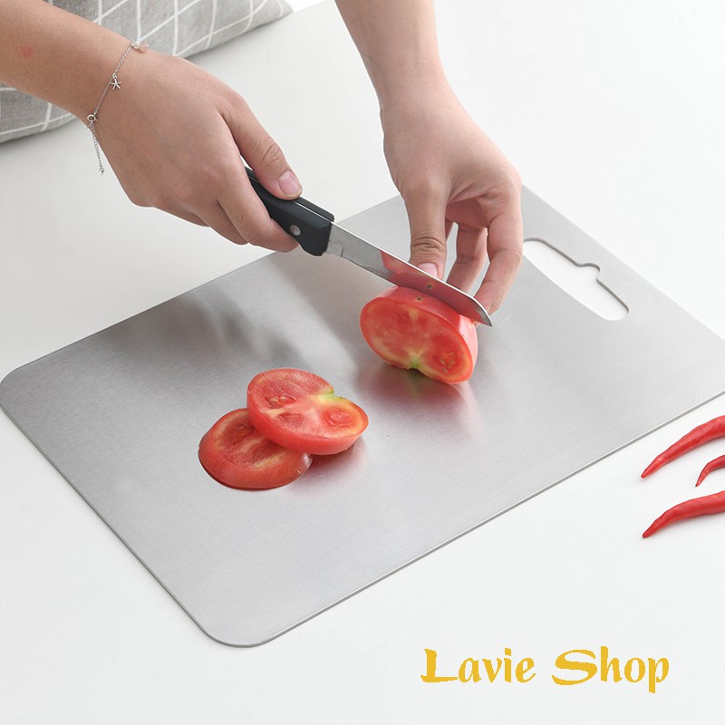 Nhà cửa & Đời sống > Dụng cụ nhà bếp > Thớt || Thớt Inox 304 Cao Cấp Dày 3mm Kháng Khuẩn, Chống Mốc, Chống Mùn, Chống Mẻ Dao Có Thể Băm, Chặt, Thái Đủ Size HB88Còn hàng