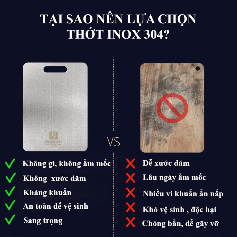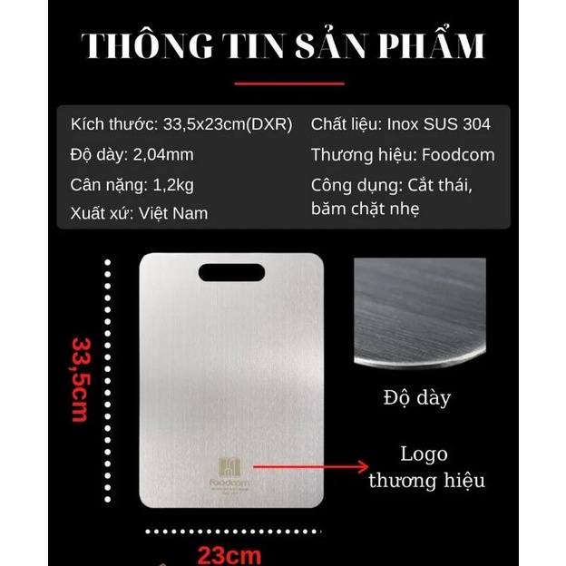 Nhà cửa & Đời sống > Dụng cụ nhà bếp > Thớt || Thớt Inox 304 cao cấp Foodcom FC008 Sản xuất Việt Nam, Kháng khuẩn, Cường lực, Bảo hành 10 năm chống han gỉCòn hàng