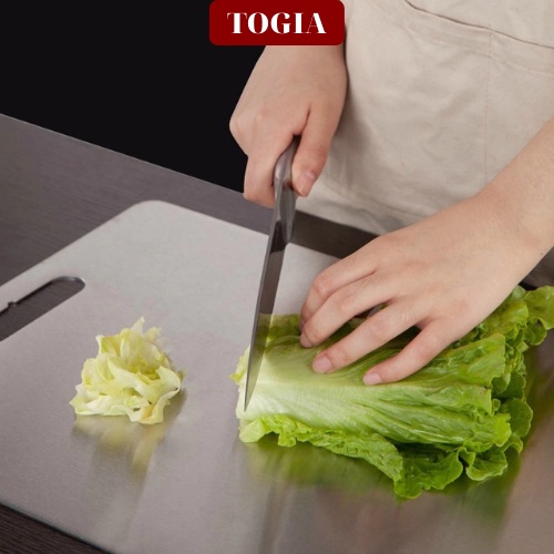 - Thớt inox thoải mái sử dụng không sợ bị rơi võ như thớt kính. Bề mặt inox có độ lì nhất định nên khi cắt thái không bị trơn như thớt kính.
