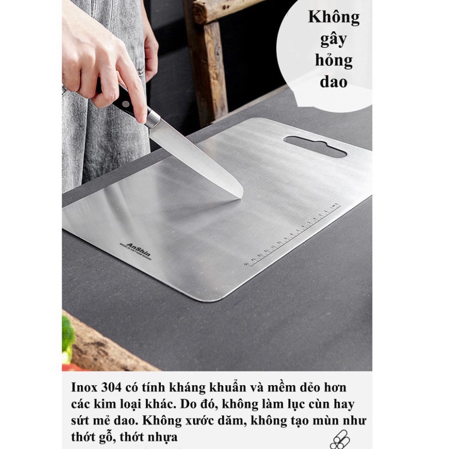 Thớt inox 304 cao cấp kháng khuẩn - chống ẩm mốc độc hại, vệ sinh dễ dàng, tiện lời, cường lực không mùn gỗ, an toàn