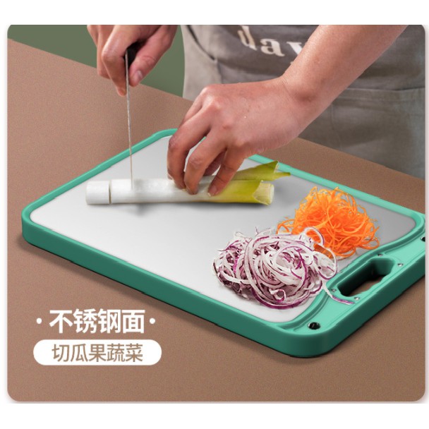 Nhà cửa & Đời sống > Dụng cụ nhà bếp > Thớt || Thớt inox 304 cao cấp kháng khuẩn chống mốc sử dụng cả 2 mặt thớt có rãnh chống trànCòn hàng