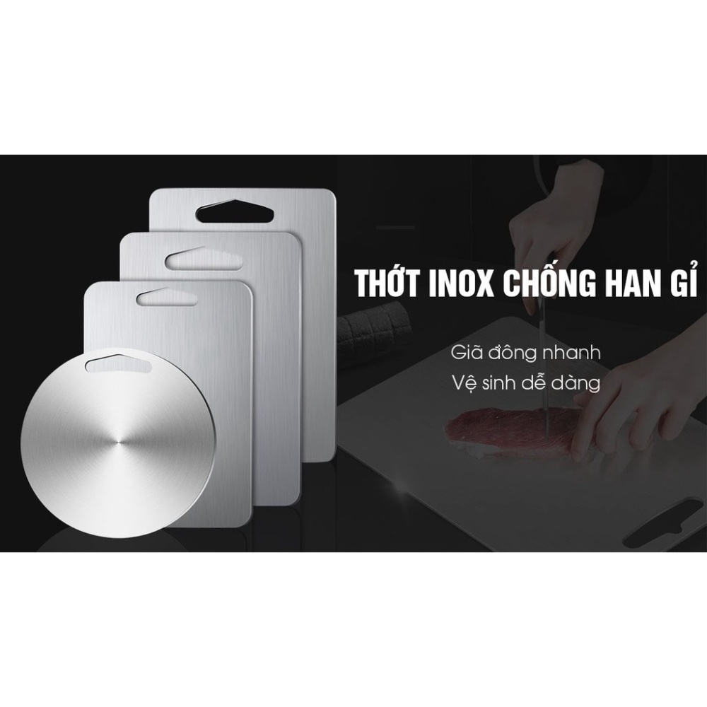 THÔNG TIN SẢN PHẨM:- Tên sản phẩm: Thớt inox 304 cao cấp kháng khuẩn - chống ẩm mốc độc hại, vệ sinh dễ dàng, tiện lời, cường lực không mùn gỗ, an toàn