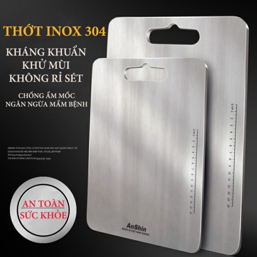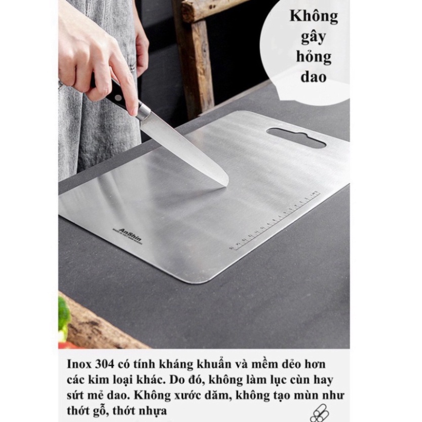 - Tên sản phẩm: Thớt inox 304 cao cấp kháng khuẩn - chống ẩm mốc độc hại, vệ sinh dễ dàng, tiện lời, cường lực không mùn gỗ, an toàn