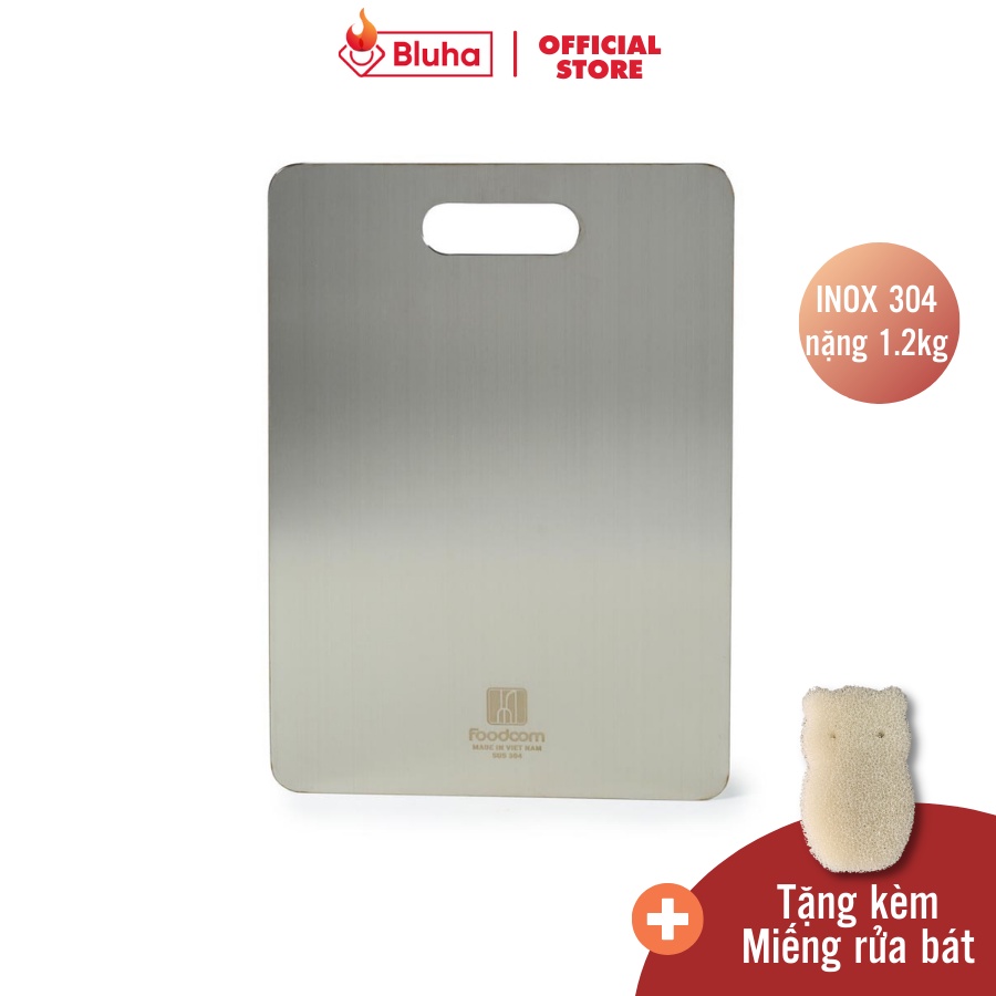 Thớt inox 304 cao cấp nặng 1.2kg kháng khuẩn không ẩm mốc xước dăm dễ dàng vệ sinh - Thương hiệu Foodcom Việt Nam