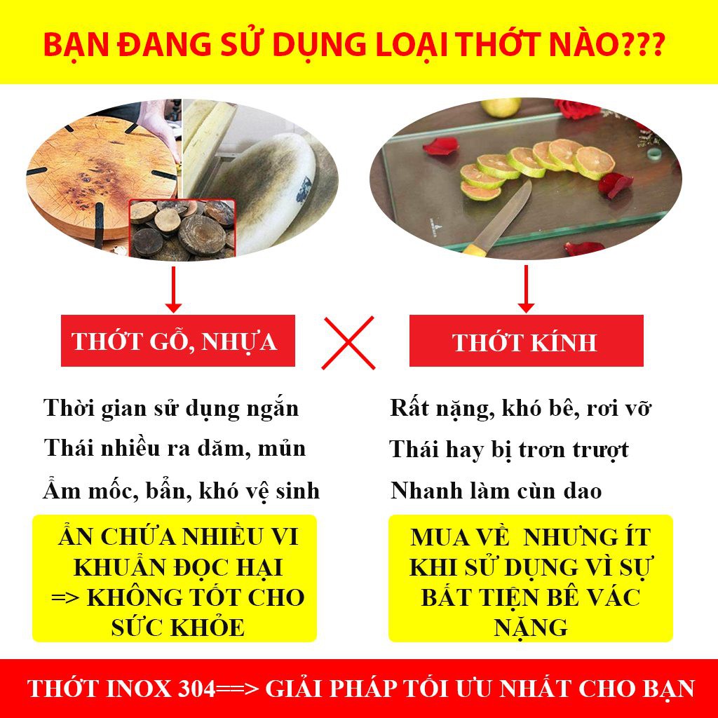 Thớt Inox 304 [HÀNG CHÍNH HÃNG] Thớt Inox 304 kháng khuẩn, khử mùi, chống nấm mốc, thớt Inox Foodcom👉👉Bạn đang gặp tình trạng THỚT BỊ MỐC, THỚT MỦN rất mất vệ sinh khi sử dụng THỚT GỖ, THỚT NHỰA ???
