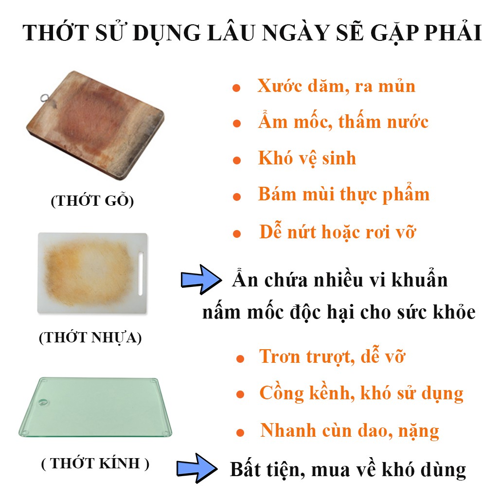 📌 Không bị xước dăm, mủn, ẩm mốc như thớt gỗ thớt nhựa