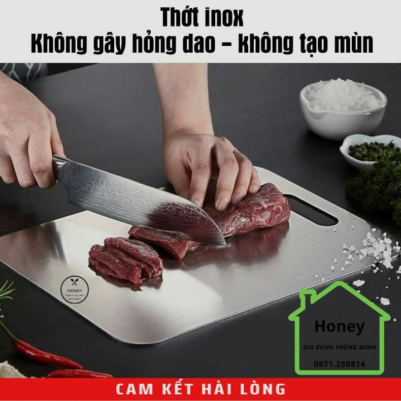 Nhà cửa & Đời sống > Dụng cụ nhà bếp > Thớt || Thớt Inox 304 Honey kháng khuẩn - chống ẩm mốc độc hạiCòn hàng