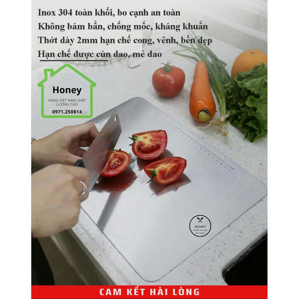 Thớt Inox 304 Honey - Made in Viet Nam - kháng khuẩn - cường lực - chống ẩm mốc - chống rỉ sét- Thớt Inox 304 Honey không lo ẩm mốc, dễ dàng vệ sinh, siêu bền đẹp cùng thời gian, không bị xước dăm, ăn mòn, nấm mốc độc hại như thớt gỗ, thớt nhựa
