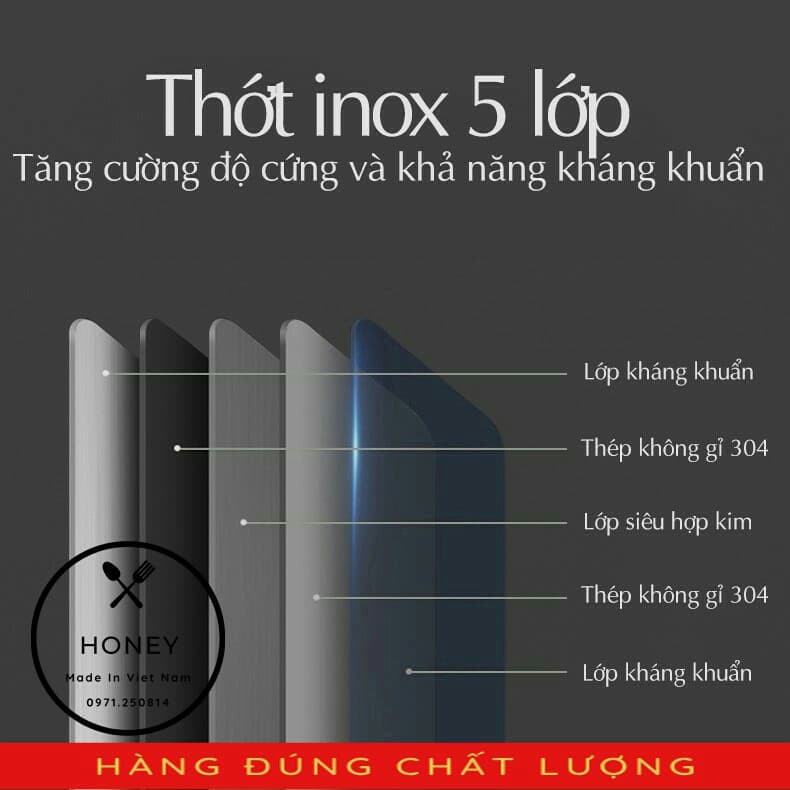 Thớt Inox 304 Honey kháng khuẩn - chống ẩm mốc độc hại
