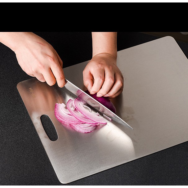 Thớt Inox 304 Kháng Khuẩn Size 29x20cm - Chống Rỉ Sét,Không Sước Dăm,Không Mùn Gỗ An Toàn Sức Khỏe- Thớt không lo ẩm mốc, dễ dàng vệ sinh, siêu bền đẹp cùng thời gian, không bị xước dăm, ăn mòn, nấm mốc độc hại như thớt gỗ, thớt nhựa
