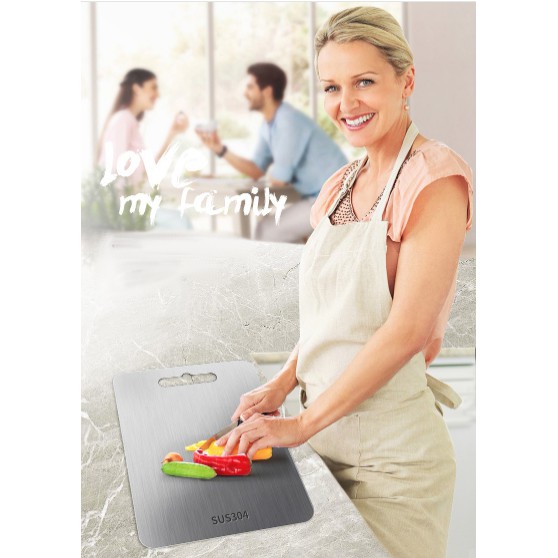 - Thớt inox thoải mái sử dụng không sợ bị rơi võ như thớt kính. Bề mặt inox có độ lì nhất định nên khi cắt thái không bị trơn như thớt kính.