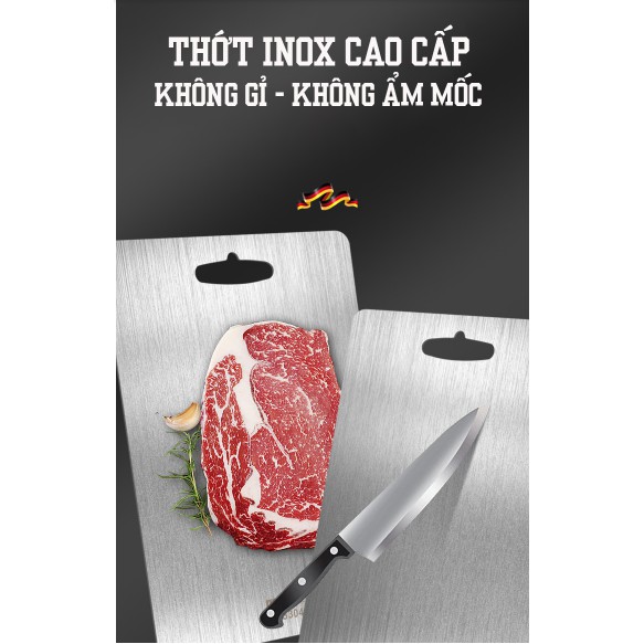 - Thớt inox Chất liệu Inox 304 kháng khuẩn, không gỉ sét, an toàn với thực phẩm