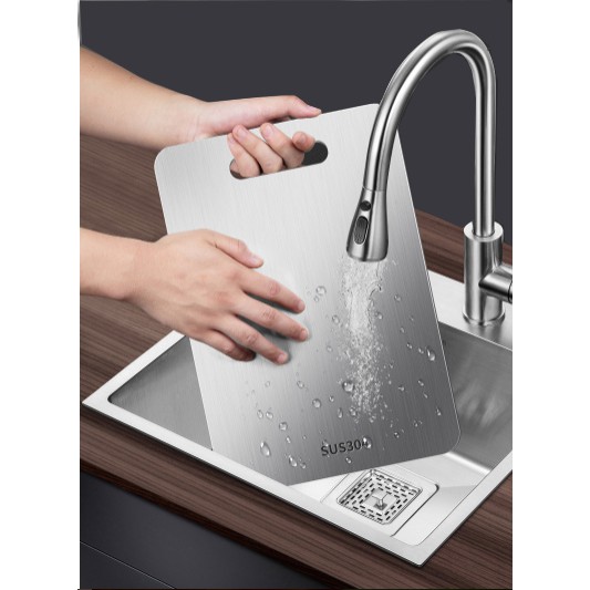 Thớt inox hạn chế được mọi nhược điểm của thớt gỗ là hay bị ẩm và mốc, thớt inox vừa nhỏ gọn nhẹ, lại luôn sạch sẽ. Chưa kể các mẹ có thể dùng mặt thớt để rã đông đồ ăn rất nhanhChất liệu: Inox 304 (Nam châm không hút dính)