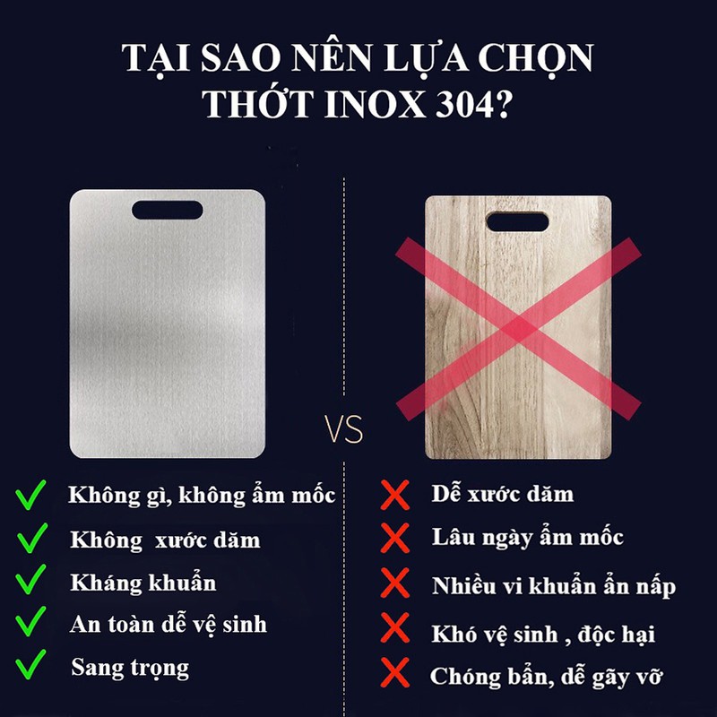 - Thớt inox siêu bền ko sợ bị tưa dăm, mốc như thớt gỗ hay thớt nhựa