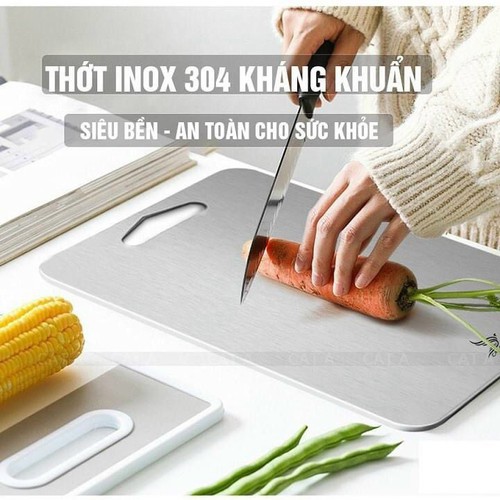 - Thớt inox Chất liệu Inox 304 kháng khuẩn, không gỉ sét, an toàn với thực phẩm