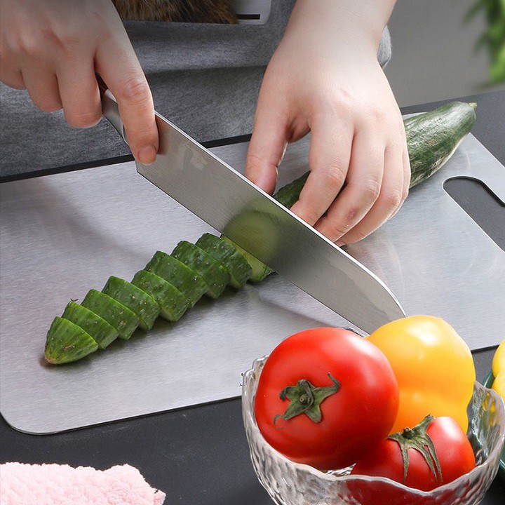 Thớt inox 304 kháng khuẩn khử mùi 2 trong 1 siêu bền - 360mm x 25mm x 2mm