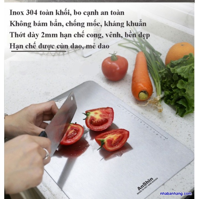 - Thớt Inox 304 siêu bền không bị xước dăm, ăn mòn như Thớt gỗ