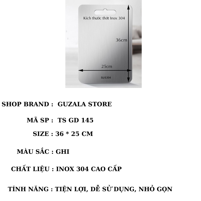 Nhà cửa & Đời sống > Dụng cụ nhà bếp > Thớt || Thớt Inox 304 kháng khuẩn cường lực - Mã: TS GD 145Còn hàng