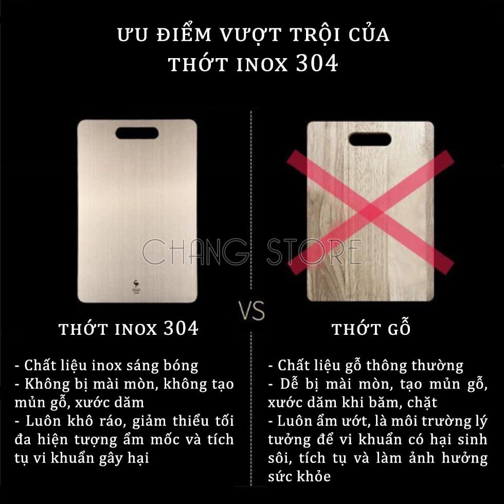 - Thớt inox cao cấp Cát Á - được làm từ inox 304 chuẩn nên Thớt inox Cát Á sẽ mang tất cả đặc điểm nổi bật của inox 304.