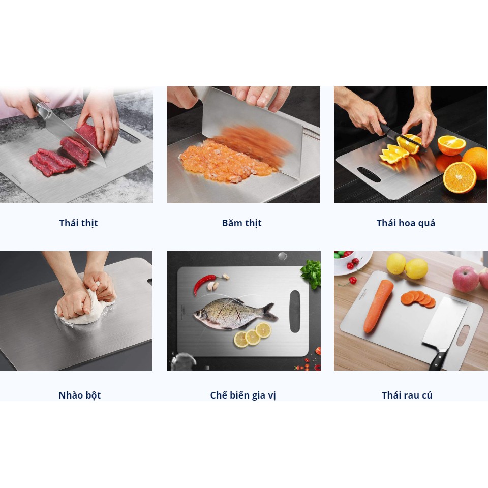 Giới thiệu Thớt Inox 304 Kháng Khuẩn, Vệ Sinh Dễ Dàng, Rã Đông Nhanh, Chống Ẩm Mốc, Không Xước Dăm, Không Mùn Gỗ size 23x34cm