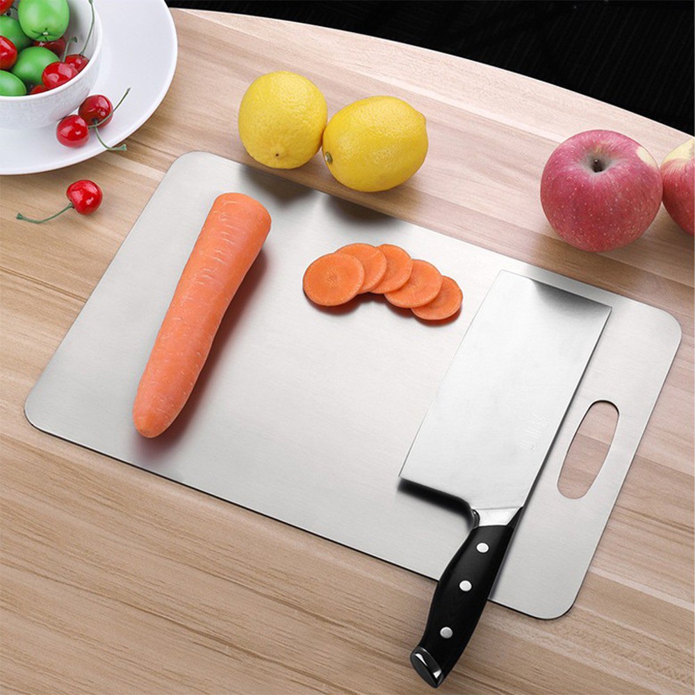 ♘ Thớt inox có độ lì, 2 mặt nhẵn, không sợ thực phẩm thái bị trơn trượt
