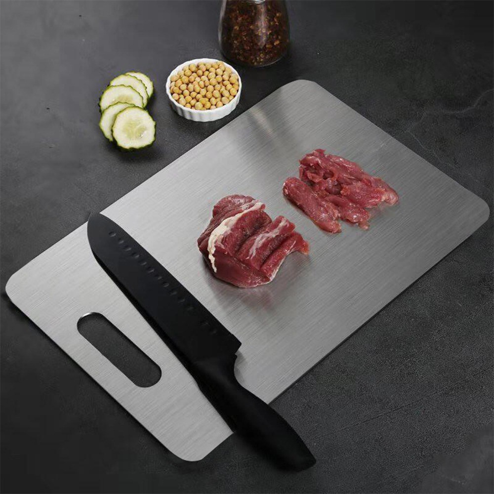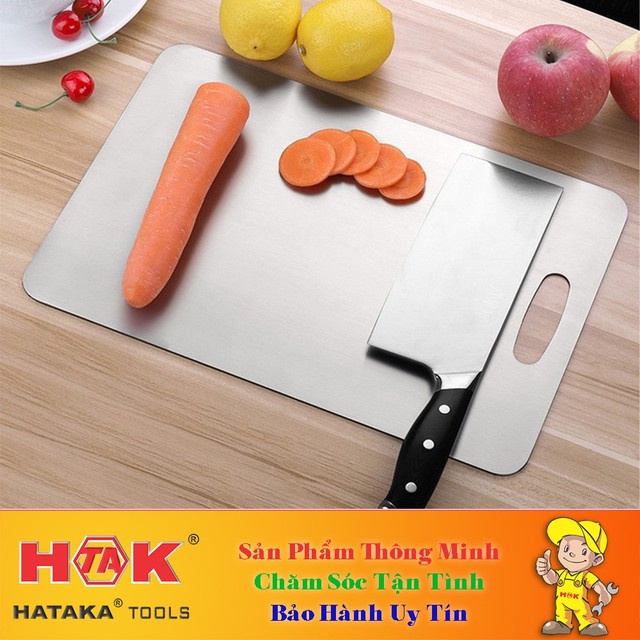 ✯ Thớt inox có độ lì, 2 mặt nhẵn, không sợ thực phẩm thái bị trơn trượt