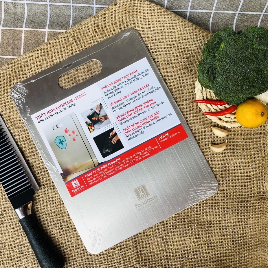Nhà cửa & Đời sống > Dụng cụ nhà bếp > Thớt || Thớt Inox cao cấp Foodcom FC005 Sản xuất Việt Nam, Kháng khuẩn, Cường lực, Bảo hành 10 năm chống han gỉCòn hàng