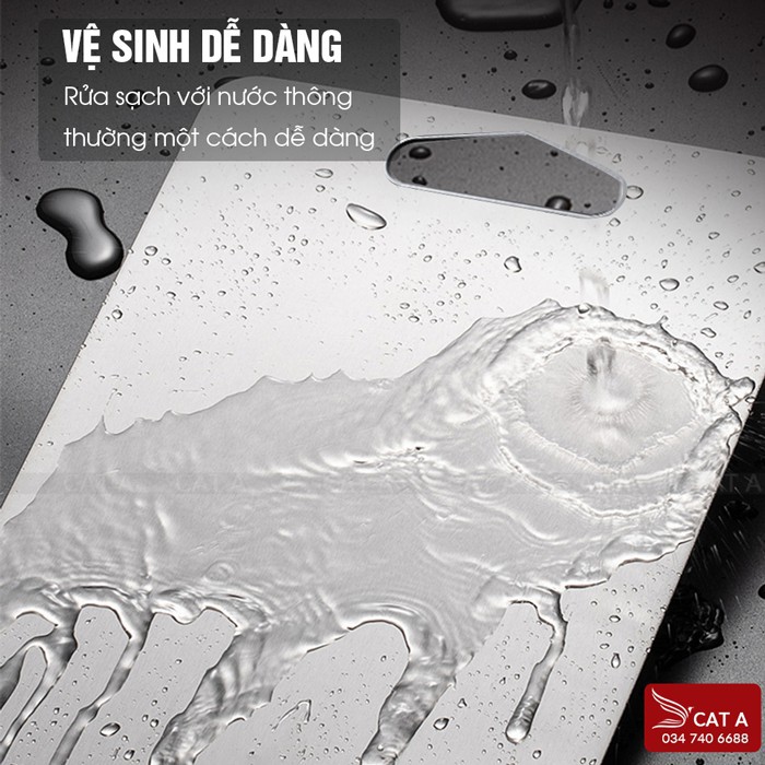 (Để nhận biết thớt inox 304 chuẩn của Cát Á so với các loại thớt khác, chúng ta có thể dùng nam châm thử. Nam châm không hút dính chính là inox 304 chuẩn còn đâu nam châm có hút sẽ là inox kém chất lượng hơn: 201, 430,... Inox bị hút sẽ bị gỉ.)