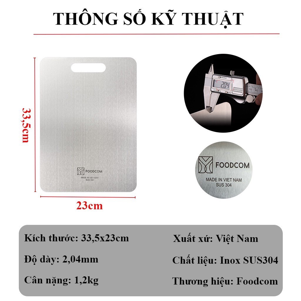 THỚT INOX KHÁNG KHUẨN - INOX SUS 304 CAO CẤP FOODCOM - HÀNG CHÍNH HÃNG - CÓ LOGO FOODCOM - HÀNG VIỆT NAM SẢN XUẤTThông số kĩ thuật: