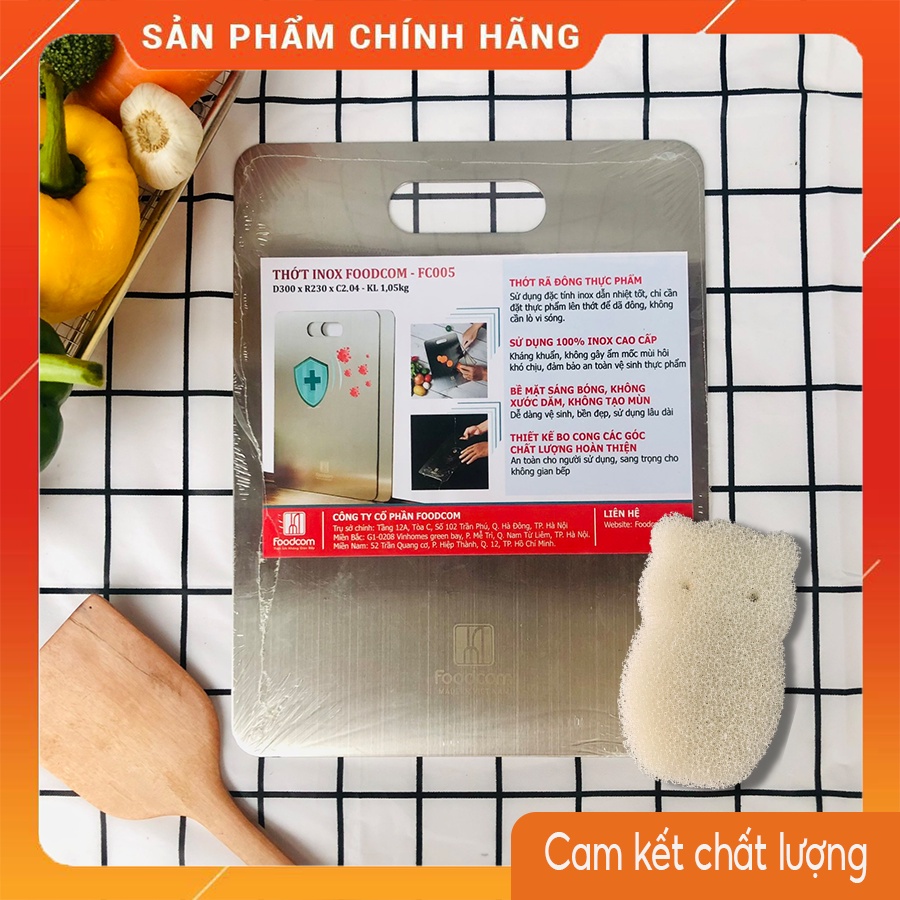 Thớt inox kháng khuẩn nặng 1,05kg sản xuất Việt Nam Foodcom005 không mùn không ẩm mốc giã đông thực phẩm nhanh