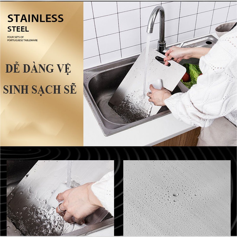 ✅ 1、 Thớt Inox 304 cao cấp mềm dẻo hơn dao nên hạn chế được cùn dao, mẻ dao