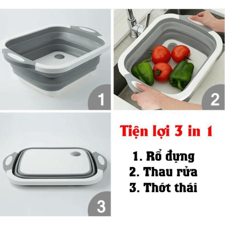 Với chất liệu nhựa cứng PP và silicol dẻo dai chỉ cần kéo tuột lên chiếc thớt thái chặt đồ của b sẽ thành chiếc chậu rửa, và 1 chiếc rổ đựng đồ tiện lợi
