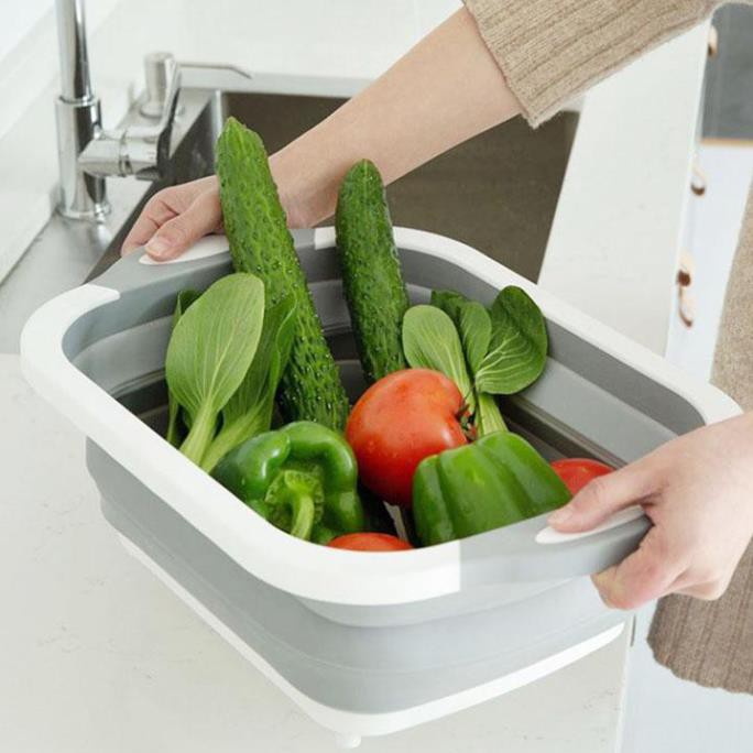 Bộ chậu gấp gọn kèm thớt đa năng Bộ thớt kiêm chậu gấp gọn tiện dụngGIAO MÀU NGẪU NHIÊN