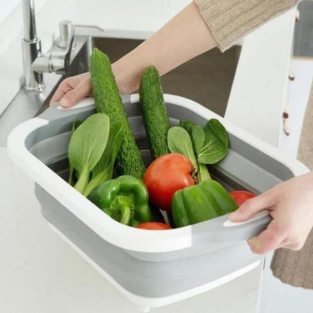 Bộ chậu gấp gọn kèm thớt đa năng Bộ thớt kiêm chậu gấp gọn tiện dụngGIAO MÀU NGẪU NHIÊN