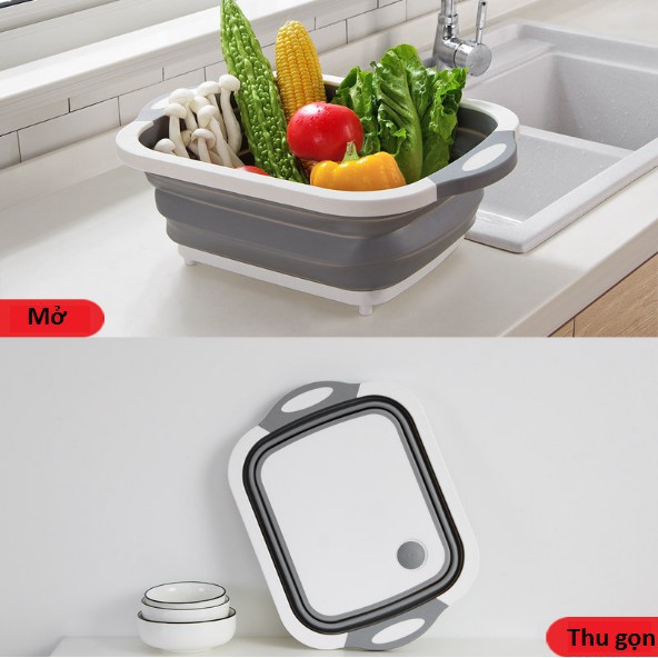 Thớt Kèm Chậu Gấp Gọn Có Lỗ Thoát Nước Đa Năng 40*30*14cm