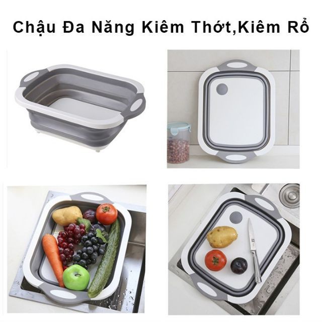 Với chất liệu nhựa cứng PP và silicol dẻo dai chỉ cần kéo tuột lên chiếc thớt thái chặt đồ của b sẽ thành chiếc chậu rửa, và 1 chiếc rổ đựng đồ tiện lợi