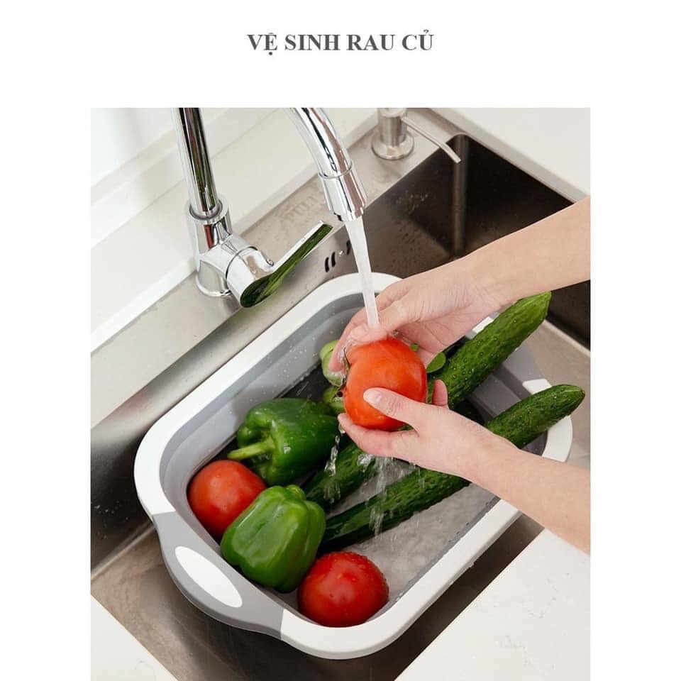 Chậu gấp gọn kèm thớt tiện dụng Thớt đa năng kiêm chậu xếp gọn thớt chậu rổ đựng đồ chậu thớt đa năng tiện dụng