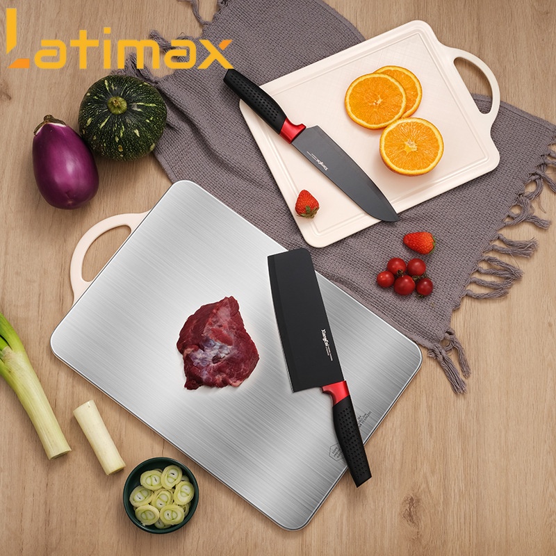 Nhà cửa & Đời sống > Dụng cụ nhà bếp > Thớt || Thớt kháng khuẩn 2 mặt Inox 304 và nhựa PP dùng trong công nghiệp chế biến thực phẩm Cao cấp LATIMAX Size 44 x 28 cmCòn hàng