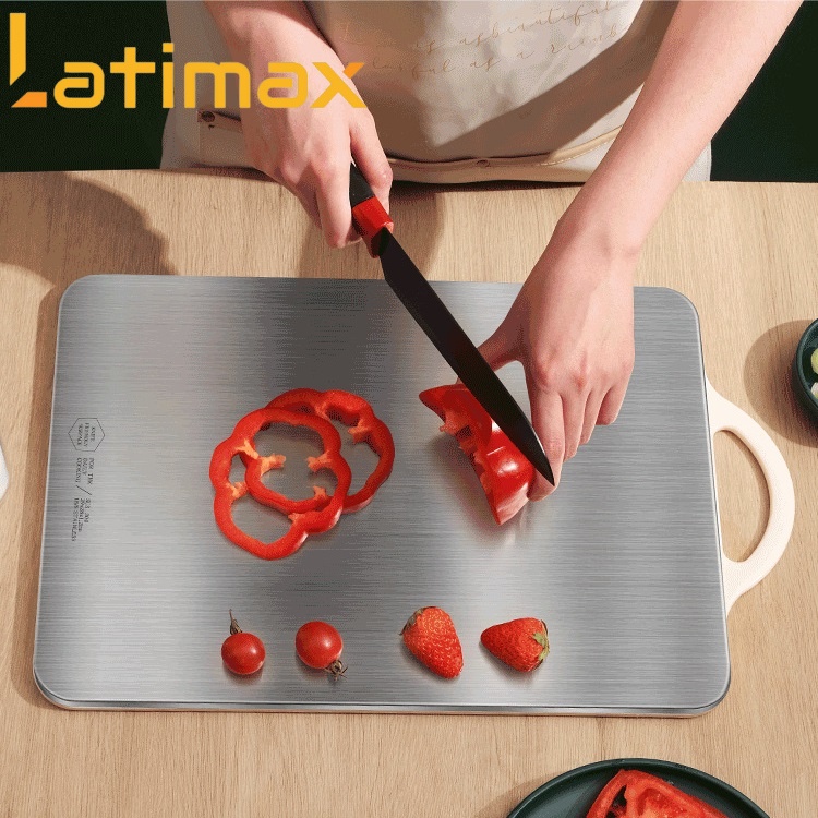 Giới thiệu Thớt kháng khuẩn 2 mặt Inox 304 và nhựa PP dùng trong công nghiệp chế biến thực phẩm Cao cấp LATIMAX Size 44 x 28 cm