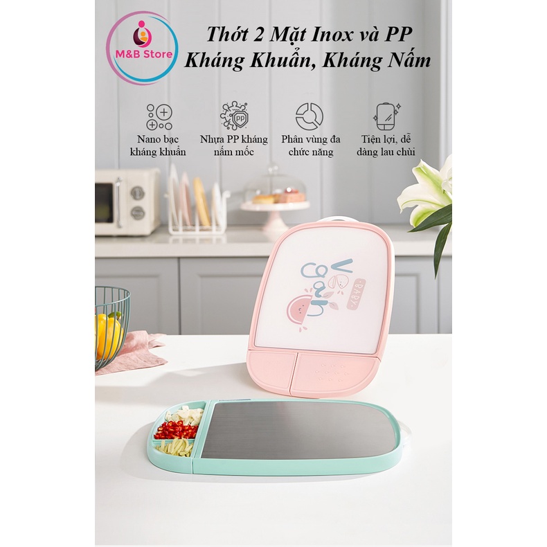 👍 Thớt cắt thực phẩm là một dụng cụ nhà bếp tưởng thật nhỏ và đơn giản, tuy nhiên nếu không cẩn thận thì thớt cũng là nơi chứa lượng vi khuẩn lớn ảnh hưởng đến sức khỏe của gia đình trong quá trình sử dụng. Đặc biệt là khi sử dụng thớt cắt thực phẩm dùng cho em bé thì mẹ cần phải ưu tiên về chất lượng kháng khuẩn vì hệ tiêu hóa vẫn còn non yếu của bé chưa thể xử lí hết những vi khuẩn vô tình xâm nhập vào qua đường ăn uống. KUB cho ra sản phẩm Thớt Kháng Khuẩn 2 Mặt Inox và Nhựa PP có một lớp nano bạc an toàn cho mẹ sử dụng cho bé và cả gia đình.✅ Thớt có 2 mặt được phủ lớp nano bạc kháng khuẩn, 1 mặt là Inox 304 khử mùi tanh và an toàn phù hợp với việc cắt thực phẩm sống, 1 mặt là nhựa PP chống nấm mốc.