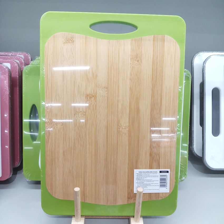 - Với nguyên liệu thân thiện với môi trường 1 mặt là PP trắng (Polypropylene), mặt kia là gỗ tre bamboo cao cấp, sản phẩm đã thông qua các kiểm tra nghiêm ngặt như FDA của Mỹ và SGD của Đức về an toàn thực phẩm.