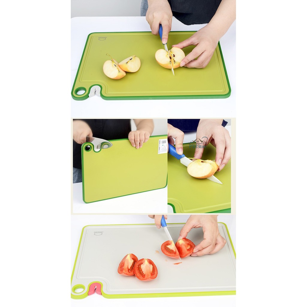 - Thớt có tính năng kháng khuẩn tuyệt đối, giúp ngăn chặn sự phát triển của vi khuẩn trên bề mặt, bảo đảm an toàn cho sức khỏe người sử dụng. Phần lỗ nhỏ trên thớt giúp bạn dễ dàng treo lên khi không sử dụng, tạo sự gọn gàng và ngăn nắp cho không gian bếp.