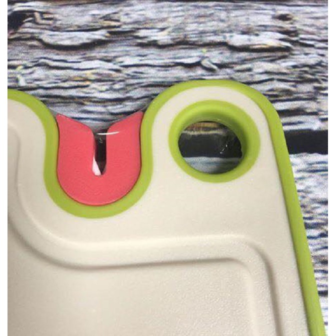 Thớt tiện dụng có gắn sẵn mài dao trên thớt, chỉ cần liếc nhẹ là có ngay lưỡi dao sắc bén để tiếp tục thao tác.
