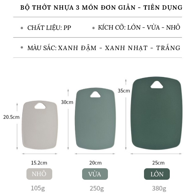 SET THỚT 3 MÓN NHỰA PP CAO CẤP CHO CHỊ EM THA HỒ TRỔ TÀI NẤU NƯỚNG NHA- Hàng nội địa Trung , nhựa PP, dày 5mm, chứ ko mỏng dính như các loại thớt trôi nổi