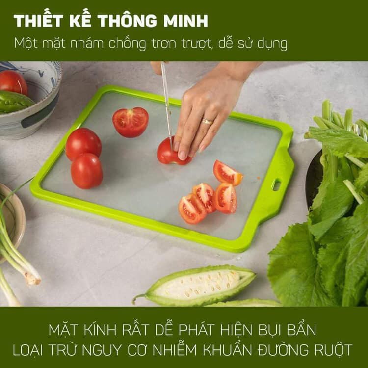 Thay thế hoàn toàn thớt gỗ/ nhựa (vi khuẩn nấm mốc lây bệnh, không an toàn vệ sinh thực phẩm).