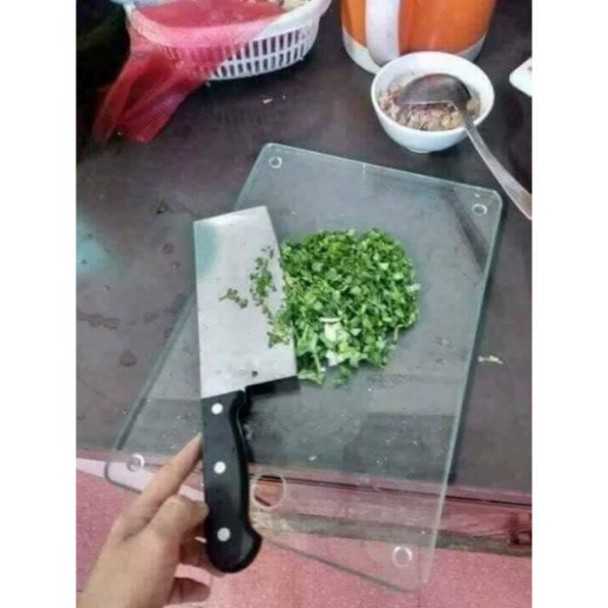 - Mô Tả Sản Phẩm- Chịu được nhiệt độ cao, ngoại lực lớn. Chất liệu kính cường lực cao cấp đảm bảo an toàn tuyệt đối cho sức khỏe người dùng. Kích thước: Dài 33cm x Rộng 23cm x dày 1cm. Khối lượng 1.9kg. Sản phẩm thông minh và hiệu quả cho người dùng có thể băm chặt thoải mái trên mặt phẳng mà ko sợ vỡ hoặc nổi mùn như các loại thớt gỗ. Đảm bảo vệ sinh cho cả gia đình Thớt có 4 đế chân cao su chống trơn trượt khi băm chặt. Có lỗ treo gọn gàng sau khi sử dụng