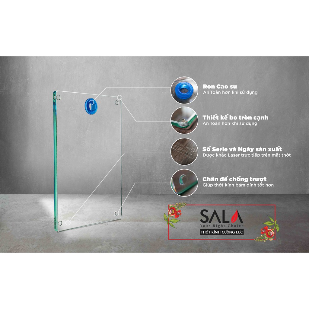 Thớt Kính Cường Lực Sala Dày 10mm - Hàng Chính Hãng Loại 1 An Toàn Và Bền Đẹp