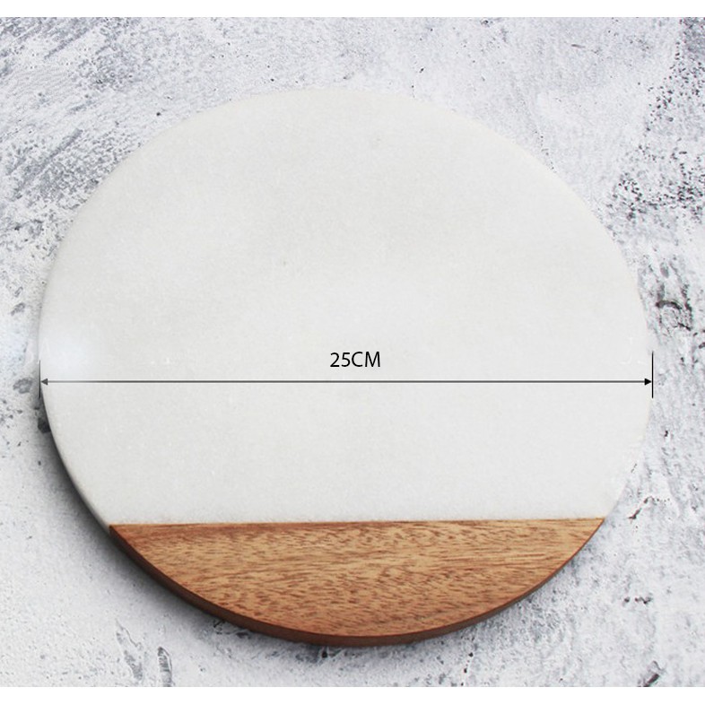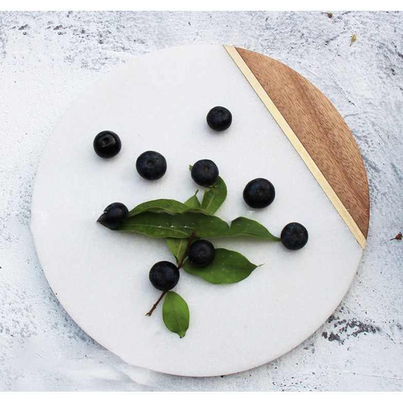 - Chopping Board Marble Round mới mang vẻ đẹp ấn tượng khi dung hoà 2 chất liệu tưởng chừng là đối nghịch: marble và gỗ thiên nhiên. Sản phẩm đem đến nét đẹp hiện đại, phá vỡ mọi qui tắc cho bạn thật nhiều cảm hứng khi nấu ăn.
